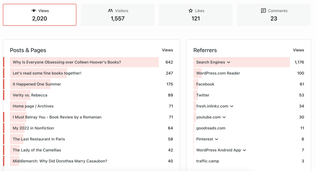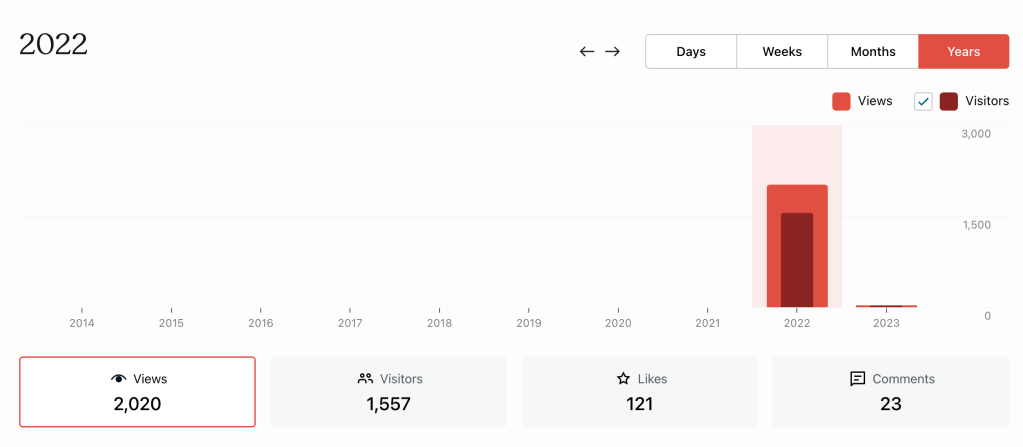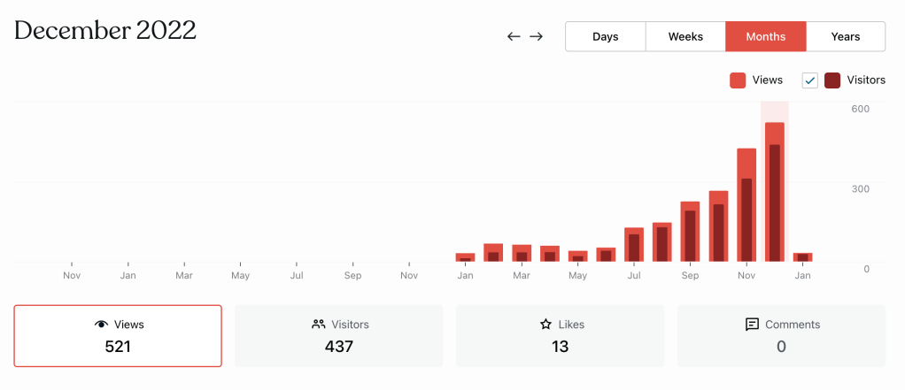 Overall, I have only one blog post that is actually a success. I wrote 50 this year and to have only one really take off is disappointing, but it is also normal. Moving forward, my main objective is to write more and commit to 2 blog posts a week, instead of one.